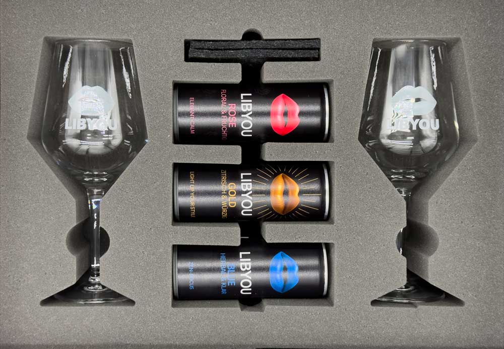 LIBYOU steht für moderne, alkoholfreie Erfrischung in der Slim-Dose. Wähle zwischen ROSE, GOLD und BLUE oder starte mit dem Probier-Set. Jede Sorte kombiniert klare Frucht- und Botanicals-Noten mit einer feinen Perlage. Ergebnis: ein Erfrischungsgetränk, das so gut aussieht, wie es schmeckt - alkoholfrei und natürlich gesüßt. Ideal für Alltag, Gäste und Events.